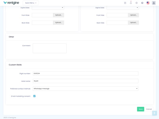 In Rentgine, you can add your own custom fields and tailor parts of your vehicle rental system to fit your workflow. This way, you capture exactly the information that matters to your business.